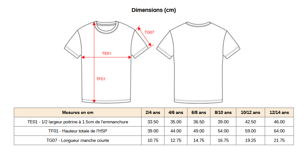 • Disponible en tailles : 4/6 ans – 6/8 ans – 8/10 ans – 10/12 ans